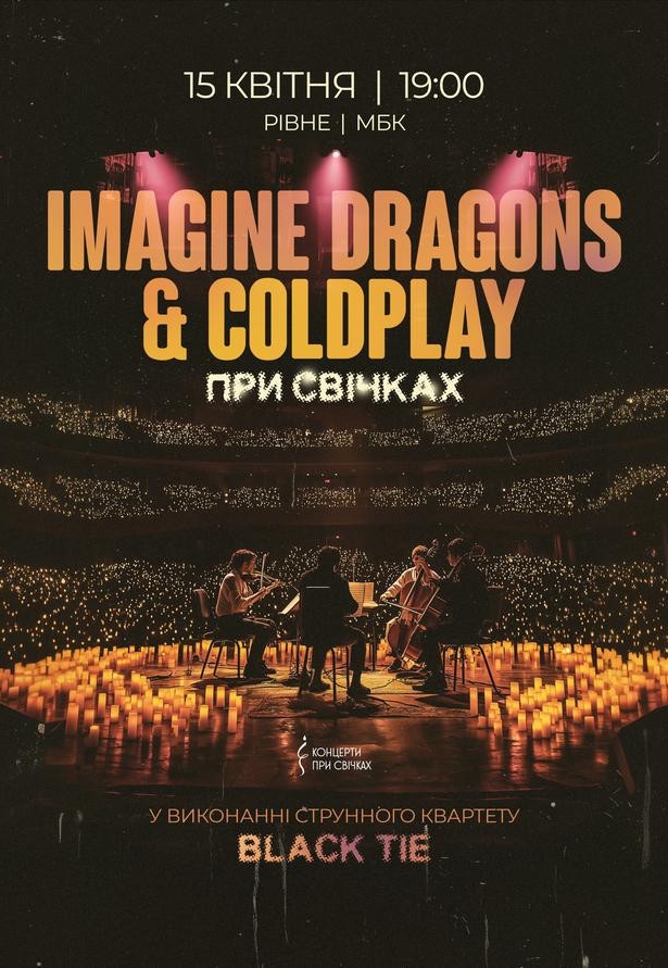 Imagine Dragons & Coldplay при свечах состоится 15 апреля 2026, 19:00, среда в Городской дом культуры. С помощью сервиса internet-bilet.ua, Вы сможете с легкостью забронировать, заказать и купить билеты на интересующий Вас концерт, спектакль, оперу, балет, мастер-классы, спортивные и детские мероприятия, оплатив их самым удобным для Вас способом: через интернет банковской картой VISA/MasterCard, наличными или курьером, если сделаете заказ билета c доставкой.
