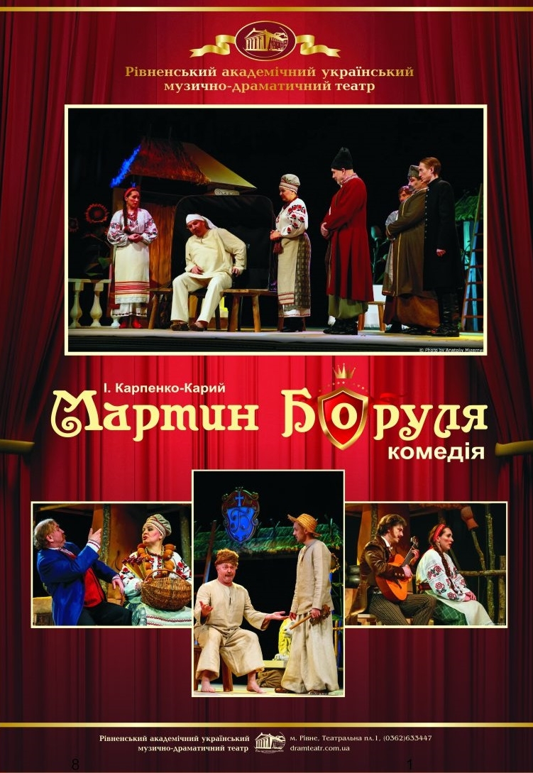 Вистава «Мартин Боруля» відбудеться 28 квітня 2026, 18:00, вівторок в Рівненський академічний український музично-драматичний театр. За допомогою сервісу internet-bilet.ua, Ви зможете з легкістю забронювати, замовити та купити квитки на концерт, спектакль, оперу, балет, майстер-класи, спортивні та дитячі заходи, що Вас цікавлять, оплативши їх найбільш зручним для Вас способом: через інтернет банківською карткою VISA/MasterCard, готівкою або кур'єром, якщо зробите замовлення квитка з доставкою.